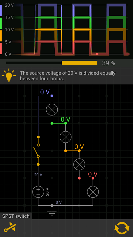 Được trang bị các công nghệ mô phỏng và đồ họa phức tạp, ứng dụng này làm cho các mạch điện tử trở nên tương tác và dễ tiếp cận một cách đáng kể. Có hơn 100 câu đố sẽ đưa bạn vào một chuyến đi vui vẻ và thú vị. Không... không đi sâu vào các công thức hoặc phương trình... chỉ là những trò chơi mạch điện thú vị đưa bạn từ những điều cơ bản nhất đến thức trắng đêm. Bạn sẽ tìm hiểu về điện áp, dòng điện, điện trở, điện dung và tuyên bố chiến thắng mỗi khi giành chiến thắng!