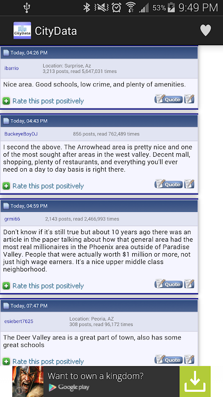 CityData app provides users access to their favorite CityData web forum.