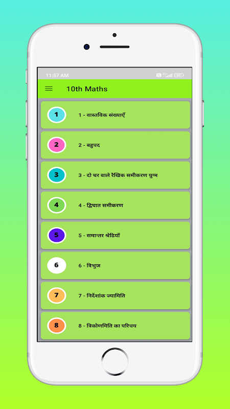 Ứng dụng này cung cấp lời giải bằng tiếng Hindi của tất cả các chương của Sách giáo khoa Toán NCERT lớp 10. Ứng dụng này rất dễ sử dụng. Bạn chỉ cần biết chương và số bài tập để tìm lời giải trong vài cú nhấp chuột.