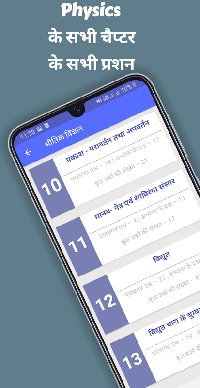 इस App में दसवीं के विज्ञान के निम्नलिखित चैप्टर शामिल है।
