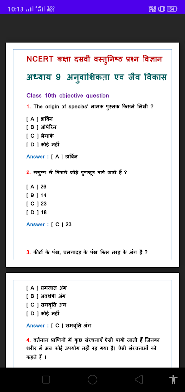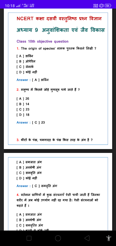 This app is developed for the students of class 10th hindi medium , and contains the objective question of ncert science book.