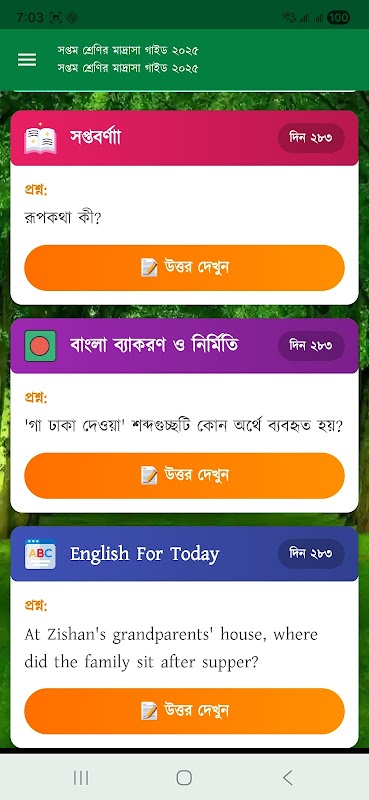Sách Madrasah lớp VII, Hướng dẫn, Thực hành và Câu hỏi hàng ngày, tất cả trong một ứng dụng