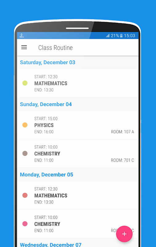 "Class Routine - Students" is an exceptionally straightforward application and extremely advantageous to utilize. Students and educator of various level can without much of a stretch utilize it. This setup semester information with course names and time period of the semester. Then they can easily add class time and weekday for specific subjects.