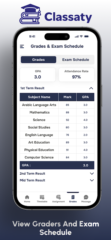 Classaty là một ứng dụng quản lý trường học toàn diện được thiết kế để tăng cường giao tiếp và tổ chức giữa phụ huynh, học sinh và nhà trường. Với các tính năng thân thiện với người dùng, Classaty cho phép phụ huynh theo dõi tiến độ học tập, điểm danh, bài tập và các sự kiện của trường con em mình, tất cả chỉ trong một nơi. Học sinh có thể dễ dàng truy cập lịch học, điểm số và nộp bài tập. Cho dù bạn là phụ huynh muốn cập nhật thông tin về việc học của con mình hay là học sinh đang quản lý cuộc sống học tập, Classaty đều đơn giản hóa trải nghiệm, đảm bảo một cách thức liền mạch và hiệu quả để duy trì kết nối với cộng đồng trường học của bạn.