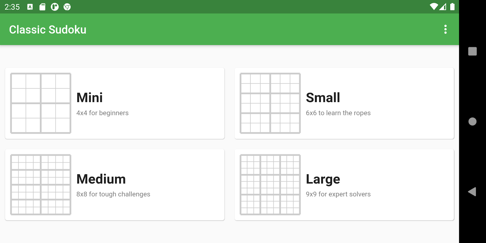 The app includes plenty of 4x4 and 6x6 puzzles for beginners, and hundreds of 8x8 and 9x9 puzzles with varying degrees of difficulty for advanced users and expert solvers, along with the ability to validate progress.