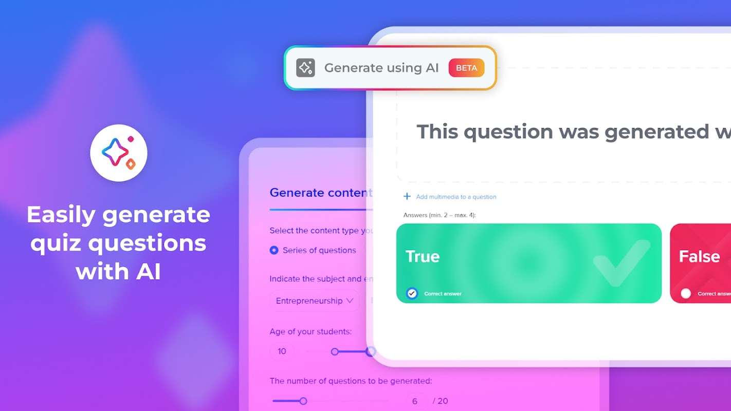 Tạo và tiến hành các bài học và câu đố hấp dẫn. Không cần điện thoại thông minh.