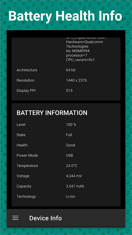 Use Clean My Android to see how much free space is left on your phone and SD card. Easily view battery health reports, software version, and more.