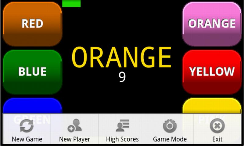 Every time you play the game, the colour of the buttons will be different, however, the actual position of the colour that you click on will remain the same; ie in anti-clockwise order from the top left; RED, BLUE, GREEN, PINK, YELLOW, ORANGE. The trick is to remember this order, look at the colour of the text in the center, and then forget and block EVERYTHING else out, if you can. It's suprisingly hard to get right, just give it a go.