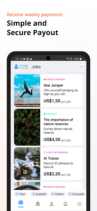 Mọi người từ khắp nơi trên thế giới có thể trở thành một phần của cộng đồng Clickworker. Bạn chỉ cần đăng nhập thông qua ứng dụng hoặc trên PC của bạn, hoàn thành công việc vi mô và nhanh chóng kiếm được một ít tiền ở bên cạnh.