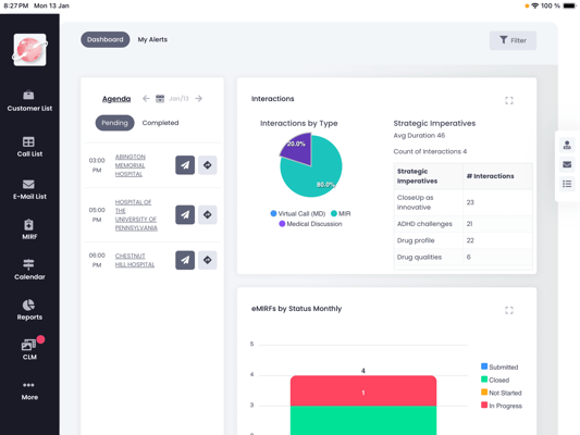 CloseUp CRM là một giải pháp mạnh mẽ được thiết kế cho lực lượng bán hàng của các công ty dược phẩm và chăm sóc sức khỏe. Nó tích hợp liền mạch thông tin tiếp thị, bán hàng và hành trình của người dùng để giúp đại diện bán hàng tối ưu hóa hiệu suất và tương tác với khách hàng.