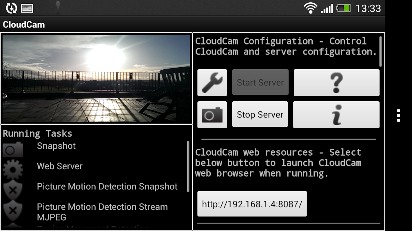 Biến điện thoại của bạn thành một camera IP không dây điều khiển từ xa tiên tiến với các tính năng bao gồm cả kế hoạch im lặng hình ảnh camera chụp / quay video, tải nội dung lên Cloud (e-mail, Dropbox, FTP) để xem từ xa hoặc lưu vào thẻ SD, thời gian thực truyền camera video / âm thanh từ camera của điện thoại qua mạng WiFi / 3G với máy tính từ xa, Mac hoặc Linux máy chủ, G-Sensor / Picture Motion Detection và kích hoạt tự động chụp ảnh hoặc quay video / âm thanh. màn hình cung cấp điện tự động gửi email trên điện lỗ / lãi và khả năng kiểm soát các tính năng ứng dụng CloudCam từ xa từ bất cứ nơi nào trên thế giới, và nhiều hơn nữa!