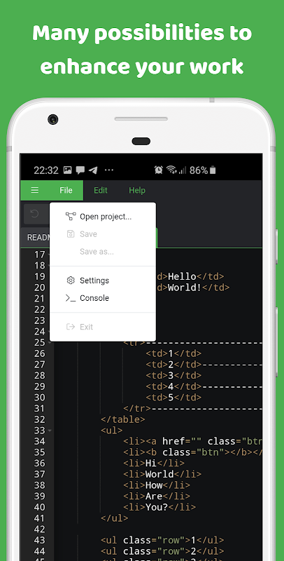 Perfect for desktop mode on Android devices. No account or Internet connection required, just download, run and start coding! The code files will be managed locally on your device.