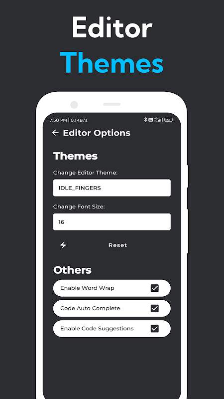Code Editor là ứng dụng cuối cùng để mã hóa và chạy các mã PHP, CSS, JavaScript, Python và HTML. Trải nghiệm hiệu suất nhanh như chớp và kết quả chính xác giúp bạn luôn dẫn đầu. Giao diện người dùng đẹp mắt và trực quan của nó đảm bảo trải nghiệm mã hóa liền mạch. Dù ngày hay đêm, ứng dụng này sẽ thích ứng với bạn, cho phép bạn làm việc dễ dàng vào bất kỳ giờ nào. Khám phá các tính năng đáng kinh ngạc của nó, bao gồm đánh dấu cú pháp, hoàn thành mã tự động, gợi ý mã và hoàn thành đoạn mã để viết mã hoàn hảo. Chọn từ nhiều chủ đề cho chế độ ngày và đêm được cá nhân hóa và điều chỉnh kích thước phông chữ theo sở thích của bạn.