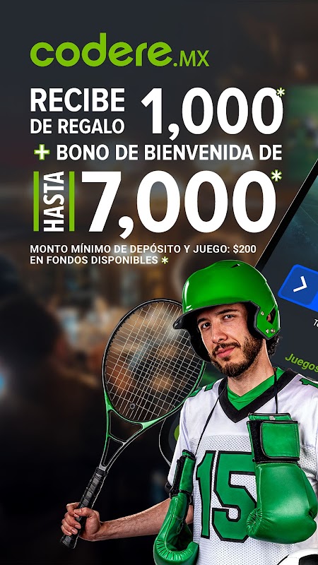 🏆 Codere Mexico: Lựa chọn tốt nhất cho cá cược thể thao trực tuyến của bạn. Tải ứng dụng Codere Mexico ngay và trải nghiệm thế giới cá cược thể thao trực tuyến chưa từng có. Đặt cược, thắng lớn và tận hưởng sự phấn khích của thể thao với Codere, ứng dụng cá cược được người Mexico ưa chuộng!