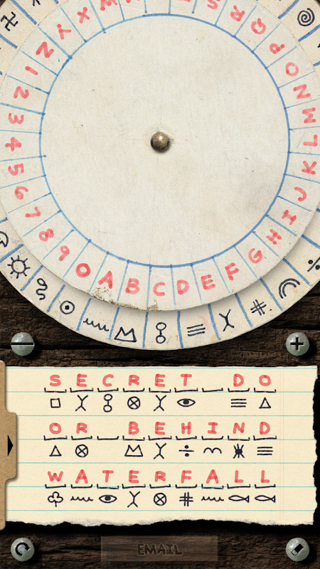 Trao đổi tin nhắn bí mật mà chỉ bạn và bạn bè của bạn có thể giải mã bằng cách sử dụng ứng dụng CodeWheel. Ẩn căn cứ bí mật hoặc tọa độ kho báu trong trò chơi bạn chơi cùng nhau!