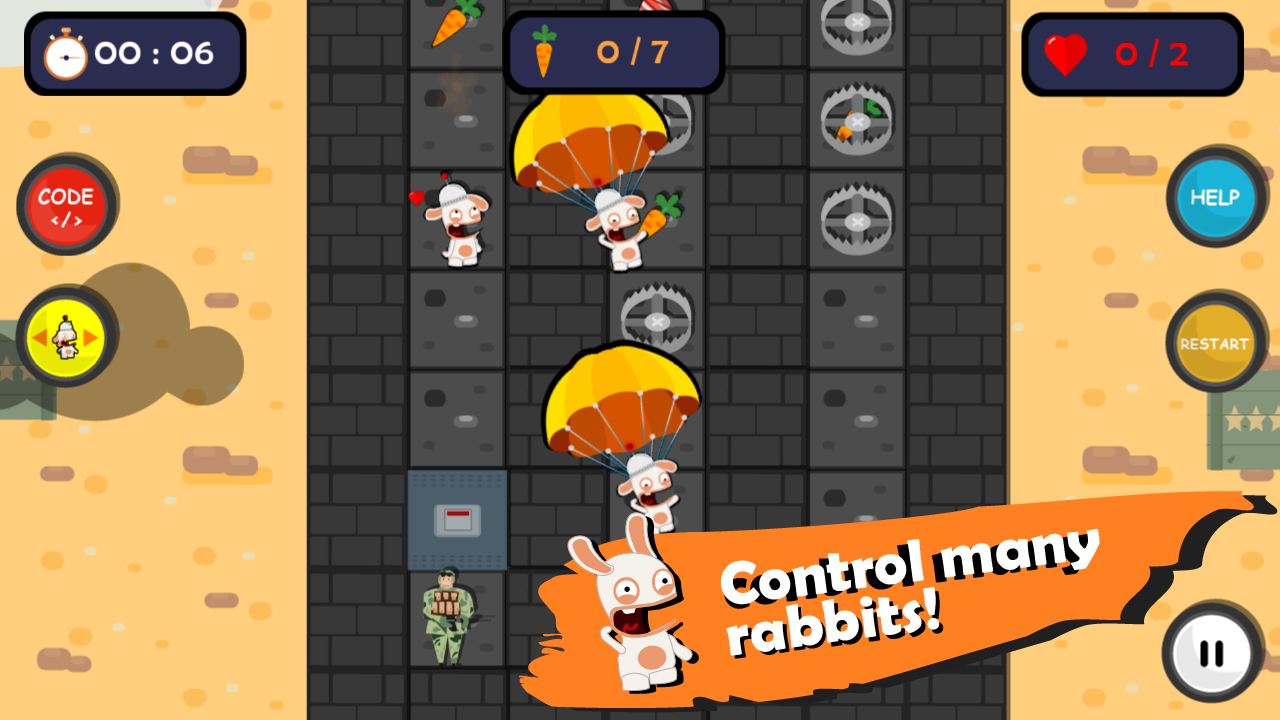 *Story mode: a level-based journey where you lead the rabbits using codes you learn while following instructions.