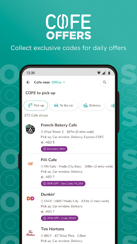 COFE hiện đang phục vụ những người yêu thích cà phê trên khắp Kuwait, Vương quốc Ả Rập Xê Út, Các Tiểu vương quốc Ả Rập Thống nhất và Thổ Nhĩ Kỳ. Ứng dụng sử dụng vị trí của bạn để hiển thị cho bạn các cửa hàng cà phê gần nhất, cung cấp các tùy chọn tín dụng trong ứng dụng và các chương trình khuyến mại đa thương hiệu thú vị.