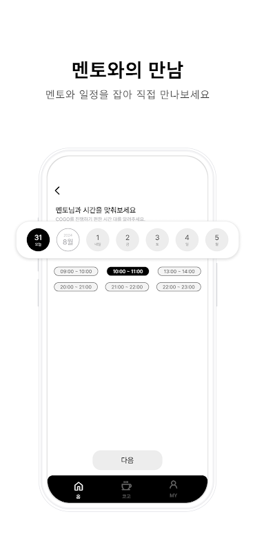 - Bạn có thể gặp gỡ các tiền bối đang hoạt động trong lĩnh vực bạn quan tâm với vai trò cố vấn! Gửi đơn đăng ký Cogo của bạn đến người cố vấn mong muốn của bạn và trải nghiệm Coffee Chat.