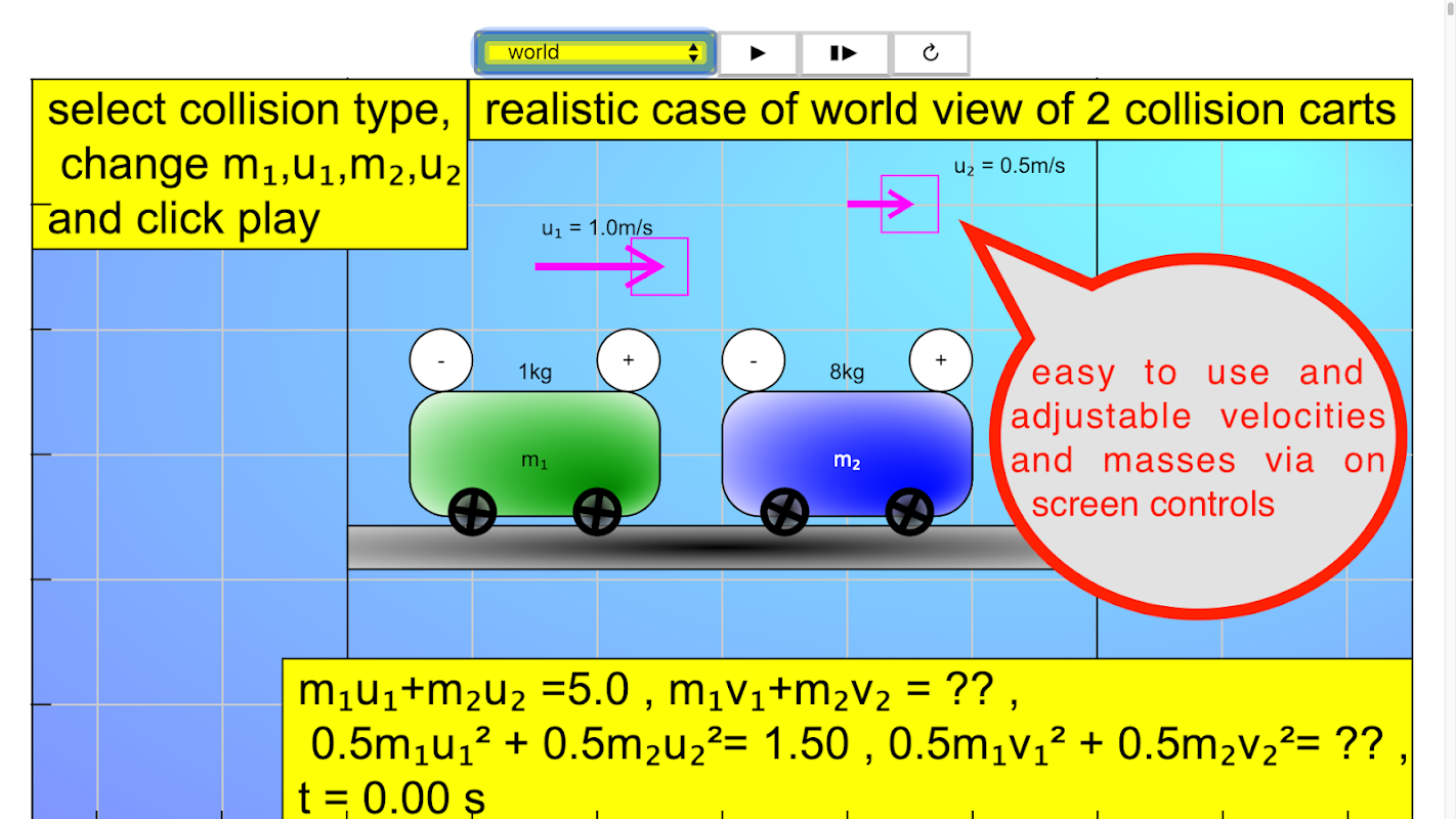 This simulation has real and ideal collision simulator targeted for A level Physics education.