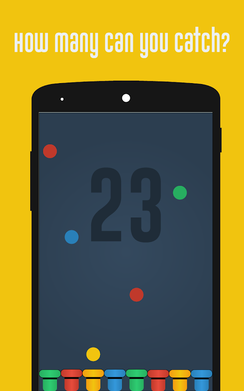 Color catch is a simple one touch game where all you have to do is to tap left or right to move the tubes at the bottom to collect the raining dots into the right tube. Sounds easy? Have a shot and find out. Score as much as you can before you hit the wrong color. Try to beat your own score or challenge your friends.