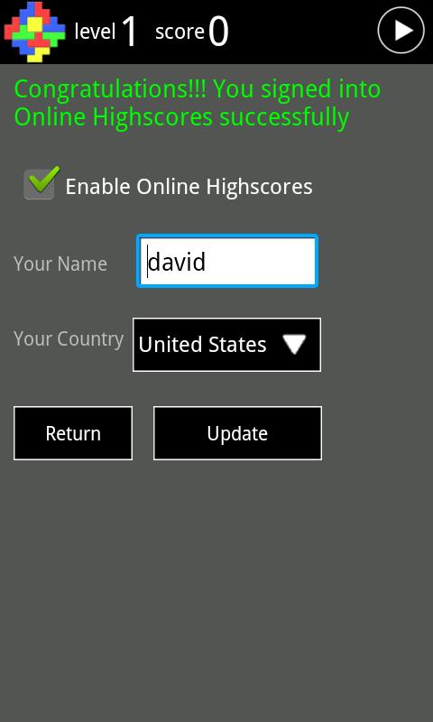 With online highscores, You can play for your country and compete with your friends. Your global rank will be calculated instantly as you finish a game. If you are offline, the ranks will be calculated once you come online. And you can play from different android devices (phones + tablets) with the same username.