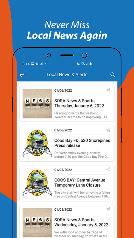 Mọi thứ từ các sự kiện, tin tức, thời tiết, cảnh báo và tin nhắn thông báo đều có nguồn gốc 100% tại địa phương chỉ bởi các thành viên địa phương sẽ giúp bạn được thông báo đầy đủ về mọi thứ đang diễn ra ở Oregon xinh đẹp của chúng ta. Ứng dụng tất cả trong một, dễ sử dụng trên điện thoại của bạn hoàn toàn miễn phí.
