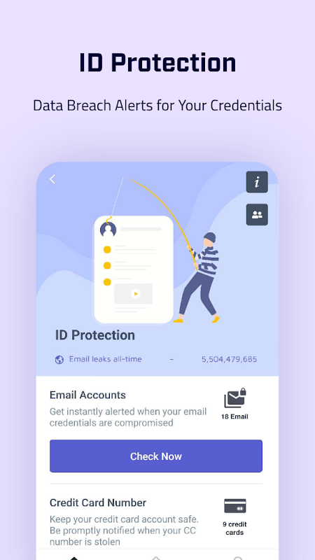 ✔ Bảo vệ Trộm cắp Danh tính - Bảo vệ chống trộm danh tính cho phép bạn xác định địa chỉ email, thẻ tín dụng và các thông tin nhạy cảm khác, đồng thời nhận thông báo bất cứ khi nào chúng bị xâm phạm và chia sẻ trên mạng tối