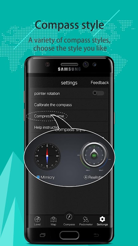 A variety of skin styles can be switched at will, to meet your needs for different styles of compass, UI is beautiful and simple