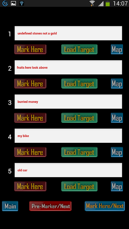Select “Mark Here/Next”>>>Click “Load Target” Button. If you have marked your location before, You will see “Target Loaded Go to Main Screen” Alert. If you have no data, you will see “Empty Location Data, Mark First” Alert. Always verify your marking process by the way of Tip2.