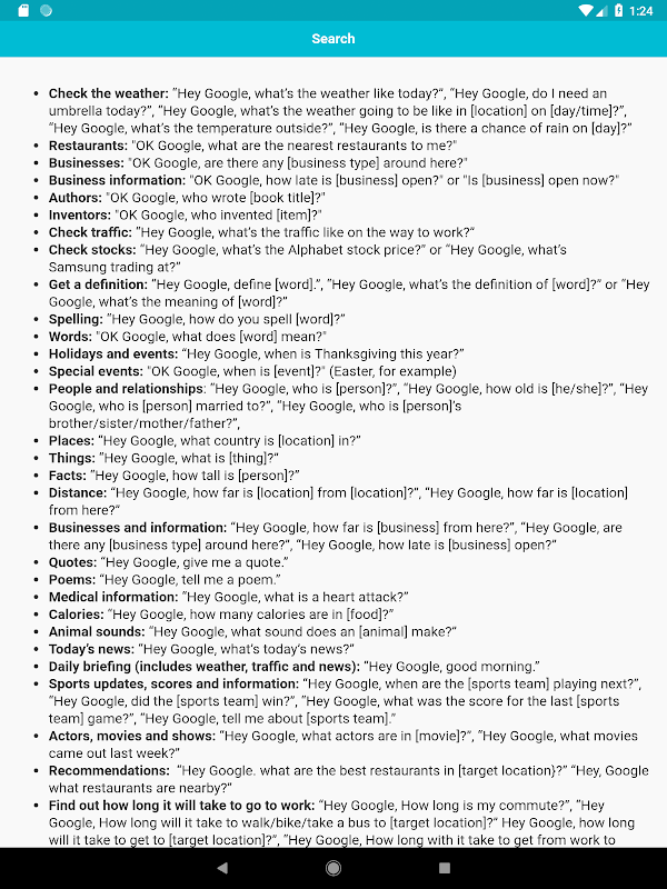 You can ask it many questions and tell it to do things. Just start with "Ok Google" or "Hey Google" to get answers from Google, manage your day, book your flight, set alarm, enjoy your entertainment, and control your smart home. When you ask for help, it can tell your voice from others for a more personalized experience. Google Home Mini works on its own or you can have a few around the house, giving you the power of Google anywhere. From this app, you will able to learn essential commands you can use with Home Mini. Enjoy!