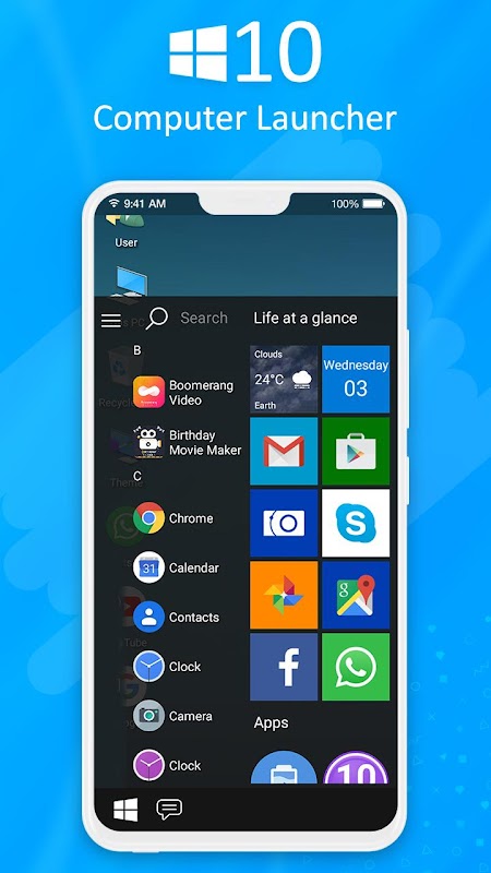 Computer launcher with make your Android phone home screen looks like a Desktop launcher style wins 10. Custom desktop computer design feel of the fastest wins theme wins quick search pro on the win 10 and receiving notifications from the system you will update it like wins 10 for android.