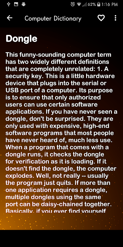 Computer Science Dictionary contains Thousands of technology acronyms and abbreviations, User-friendly, comprehensive, and authoritative: the perfect free computer dictionary for programmers, developers, web designers, IT professionals, students, and anyone looking to better understand technology. Save unlimited bookmarks or check your search timeline, View your recent searches. See search suggestions as you type, Adjust font size, Share definitions via social networks, email, and text.
