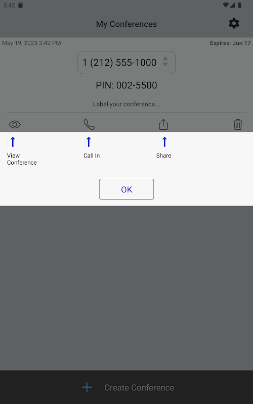 • Xem lịch sử cuộc gọi hội nghị của bạn bao gồm ngày / lần / khoảng thời gian, và thông tin về mỗi người tham gia
