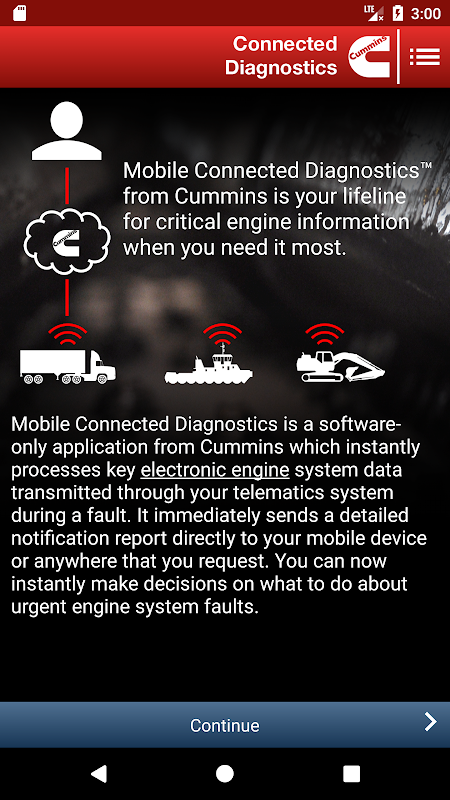 Điện thoại di động Diagnostics Connected biến động cơ Cummins dữ liệu lỗi hệ thống vào thông tin hữu để cho phép quyết định ngay lập tức cho năng suất thiết bị tối đa.