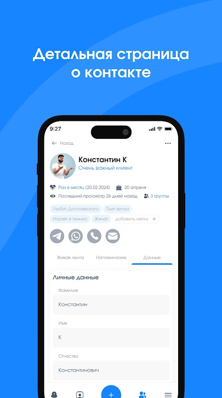 ✅ Lưu trữ tất cả thông tin về một người ở một nơi: điện thoại, địa chỉ, mạng xã hội, ghi chú.