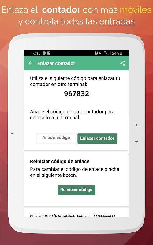 3º- Với Ứng dụng này, bạn có thể liên kết nhiều điện thoại và sử dụng cùng một bộ đếm để theo dõi tại các lối vào hoặc địa điểm khác nhau.