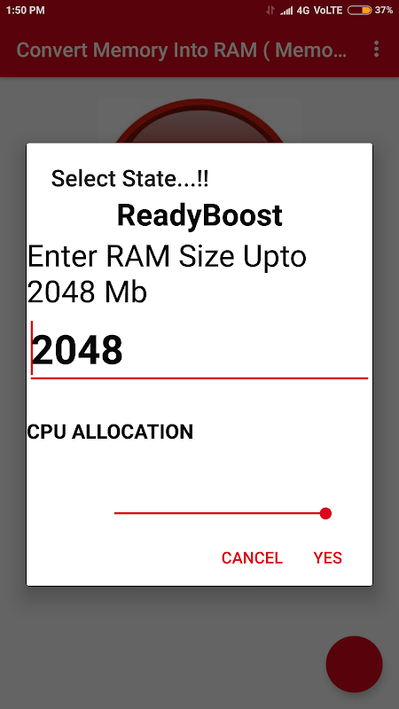 CONVERT MEMORY TO RAM :- Allow you to convert yout internal memory to Ram, which will Allow you to fast your device and play some extra games in your android device.