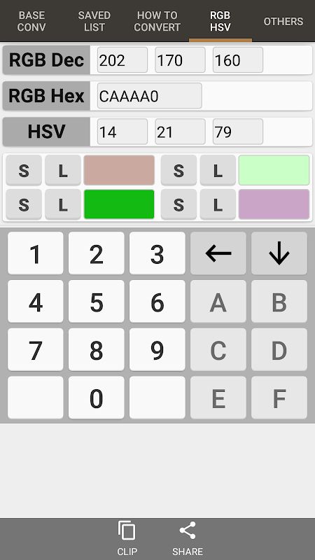 - Hỗ trợ chuyển đổi giữa mã màu RGB (Hex / Dec) sang / từ mã màu HSV