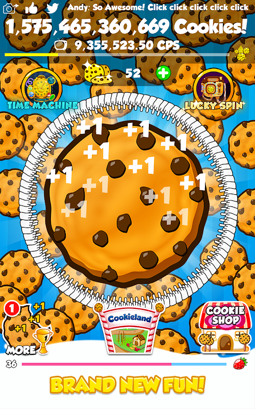 - You have 2 new powerful boosts at your fingertips: The Lucky Spin with a free daily spin, and the Time Machine which speeds up time AND your cookie production!