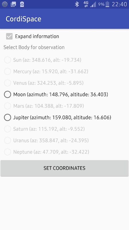 Device and an android application that help people focus their telescope on the available for observation planets without using any maps and catalogs.