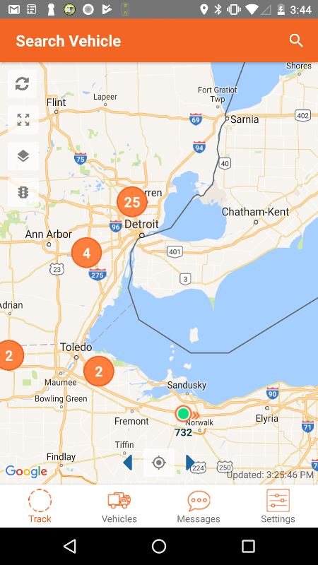 Android users can monitor vehicles on the tracking map to view their position, direction, speed and see which drivers are logged on at an time.