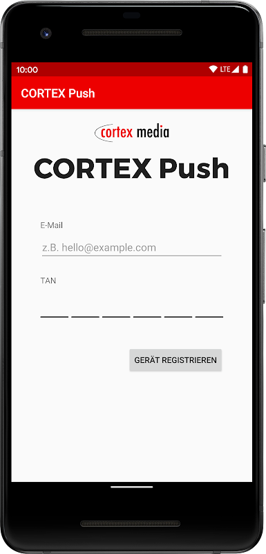 Ứng dụng thông báo cho các dịch vụ và khách hàng của Cortex Media GmbH ở Ulm.