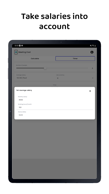 • Dễ sử dụng: Bắt đầu tính toán và theo dõi chi phí cuộc họp trong vài giây.