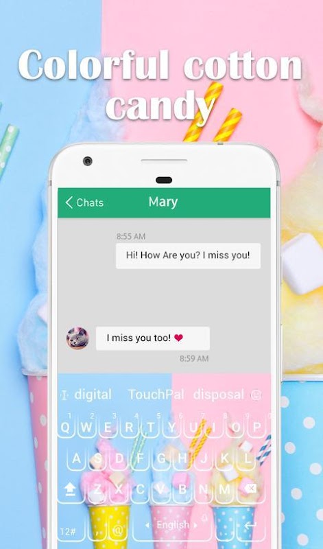 theme Kẹo bàn phím mới bông miễn phí cho TouchPal Emoji Keyboard. vui vẻ gõ!