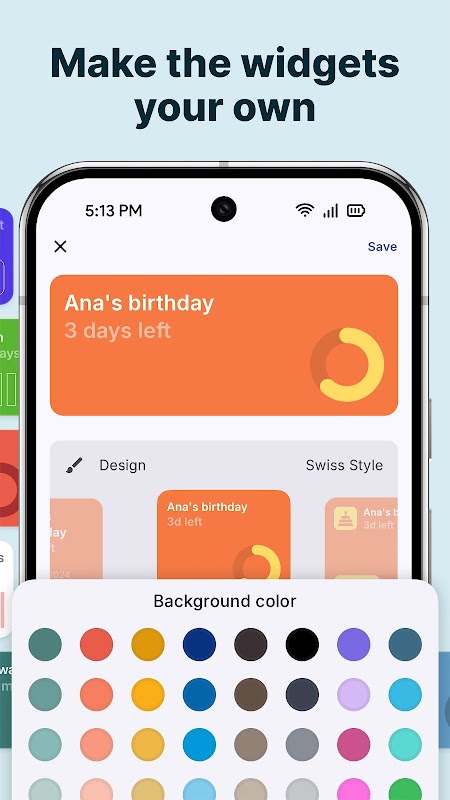 🎨 Cá nhân hóa việc đếm ngược của bạn bằng màu sắc, biểu tượng, bố cục và phông chữ