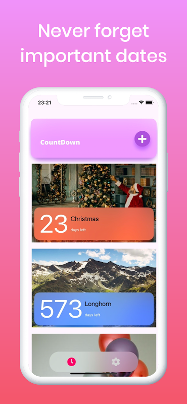 CountDown nhắc nhở bạn những sự kiện quý giá nhất của bạn. Nó miễn phí, dễ sử dụng và bạn thực sự sẽ không bỏ lỡ ngày kỷ niệm của mình, sinh nhật của người thân yêu của bạn và nhiều hơn nữa.