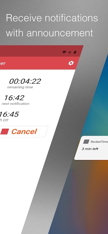 Ví dụ: nếu bạn đặt đếm ngược thành 60 phút, thì ứng dụng sẽ tạo ra các thông báo sau, thông báo này sẽ cho bạn biết thời gian còn lại: