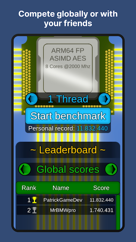Cạnh tranh trên toàn cầu hoặc với bạn bè và xem ai có điện thoại mạnh nhất.