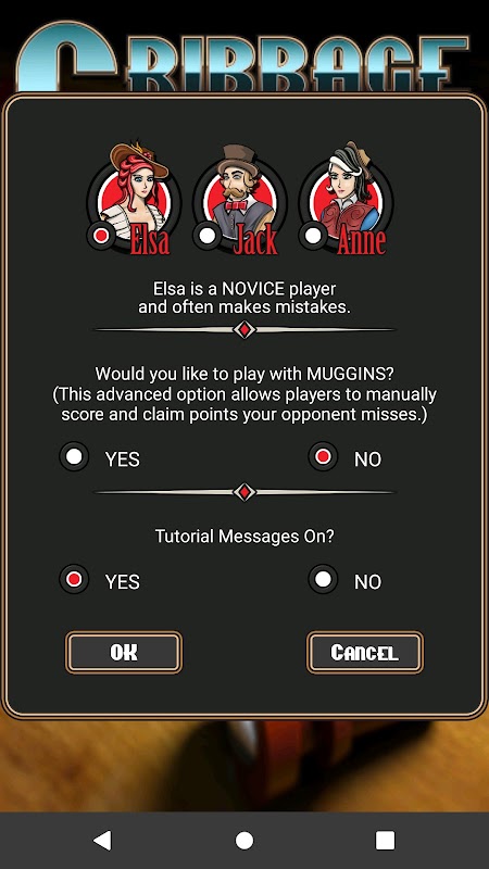● Elsa, Jack và Anne: chơi với 3 người bạn máy tính có kỹ năng và khả năng khác nhau; Elsa là người mới bắt đầu, nhưng Anne là một Cribbage Pro!