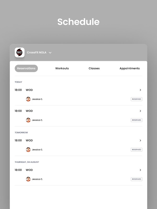 Đặt chỗ lớp học và quản lý tài khoản cho các thành viên của CrossFit NOLA